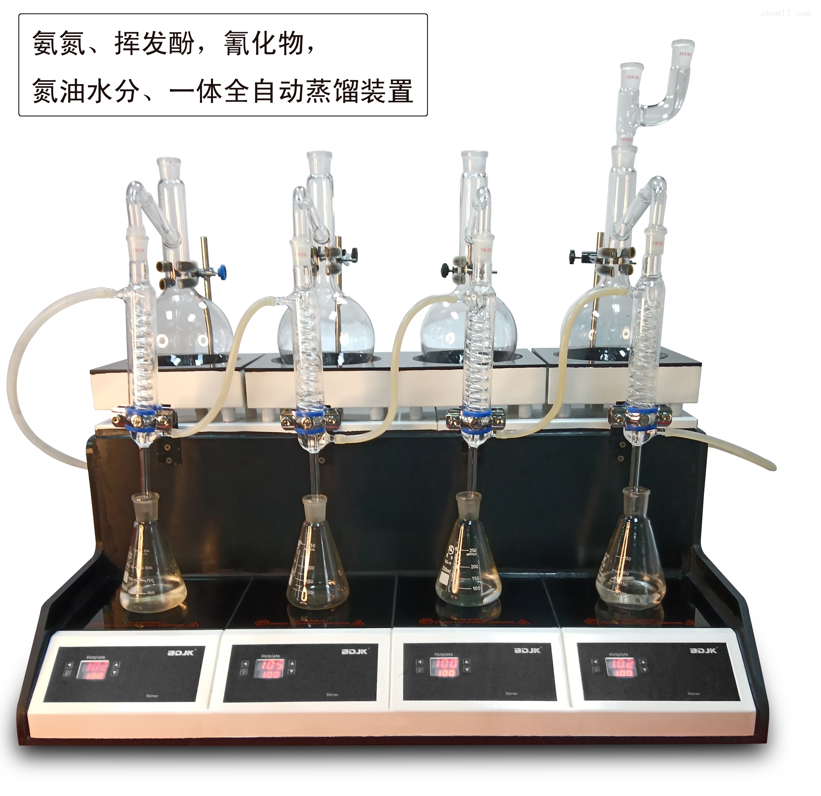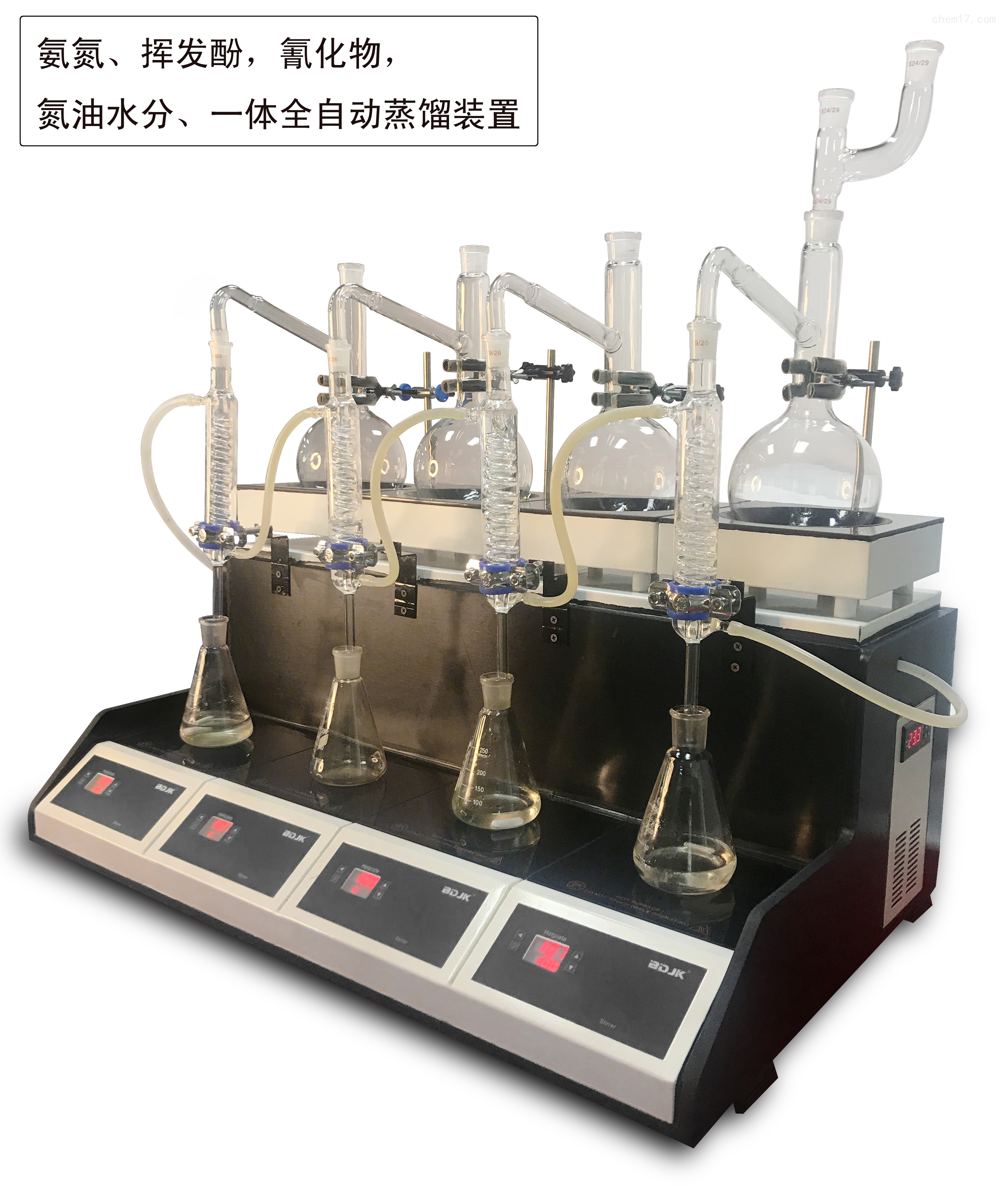 適用于化物、揮發(fā)酚、氨氮、氟化物、二氧化硫、酒精度、甲醛、COD、凱氏氮油中水分等項(xiàng)目的蒸餾處理;